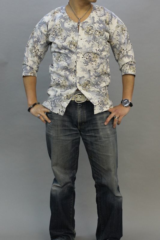 鯉口シャツ【風神雷神/白系】 M・L・LL・3L寸 大人用 男性女性兼用 白系 [edo5786]
