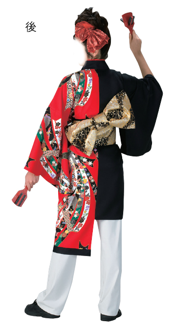 よさこいコスチューム(レディース)赤・黒 【束ね熨斗】 [ty60112]