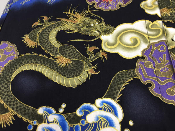 鯉口シャツ【波と雲と龍 青系・黒系】M・L・LL寸 大人用 男性女性兼用 青系 [edo0435-0436]