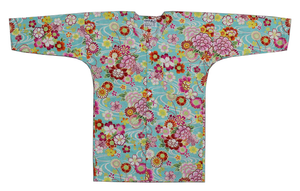 鯉口シャツ【流水花/水色系】 M・L寸 大人用 男性女性兼用 青系