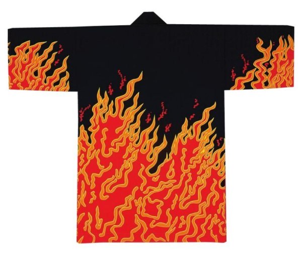 お祭り長半纏:半纏帯別売【炎】 黒・赤 [edo6311]