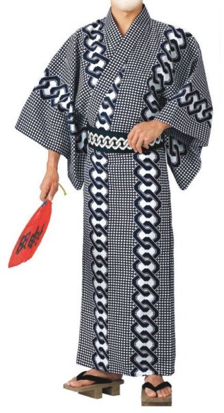 【男仕立】仕立て上がり お揃い浴衣 M・L寸【吉原つなぎ】白地に紺 [ty61377]