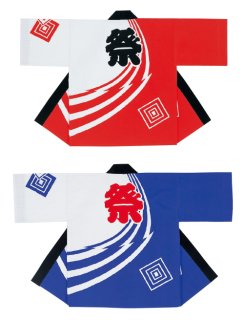 子ども用お祭り法被:半纏帯別売【変わり稲妻と三升に祭】白・青 [u7764-7774-7784]