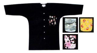 胸ポケットワンポイント黒鯉口シャツ【福だるま 紅白・ネオン】大人用 男性女性兼用 [edo0635-0636]
