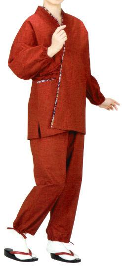 女性用 二部式作務衣 赤錆色(あかさびいろ)系 [s8960-4]