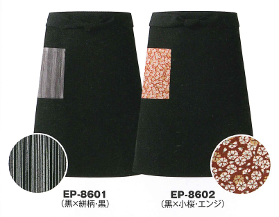 ロング丈前掛(エプロン) 黒 [fk-ep8601-8602]