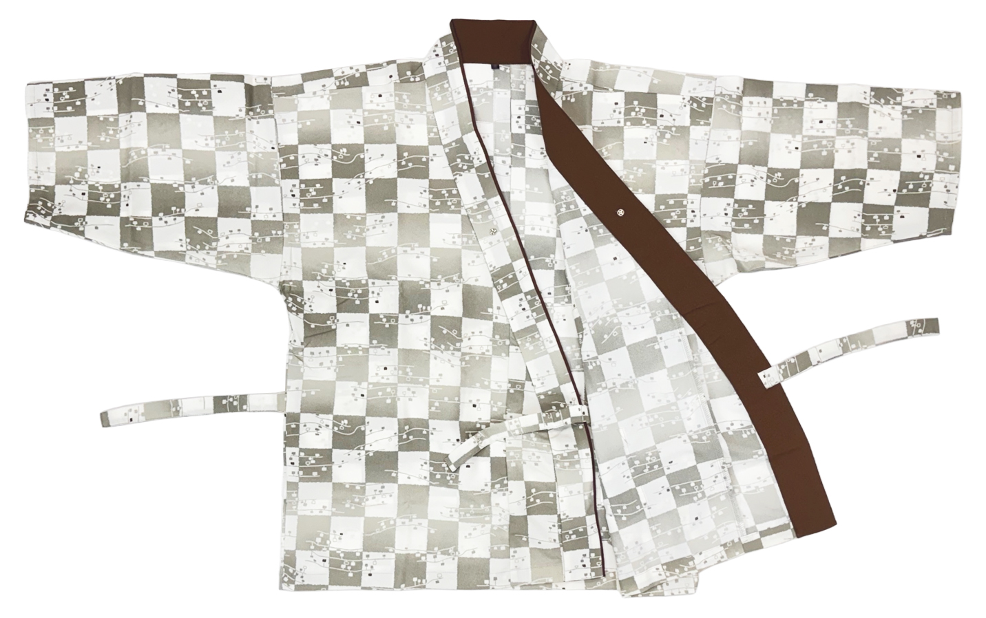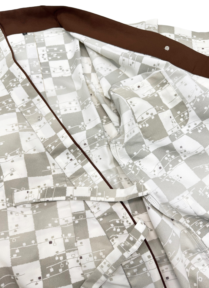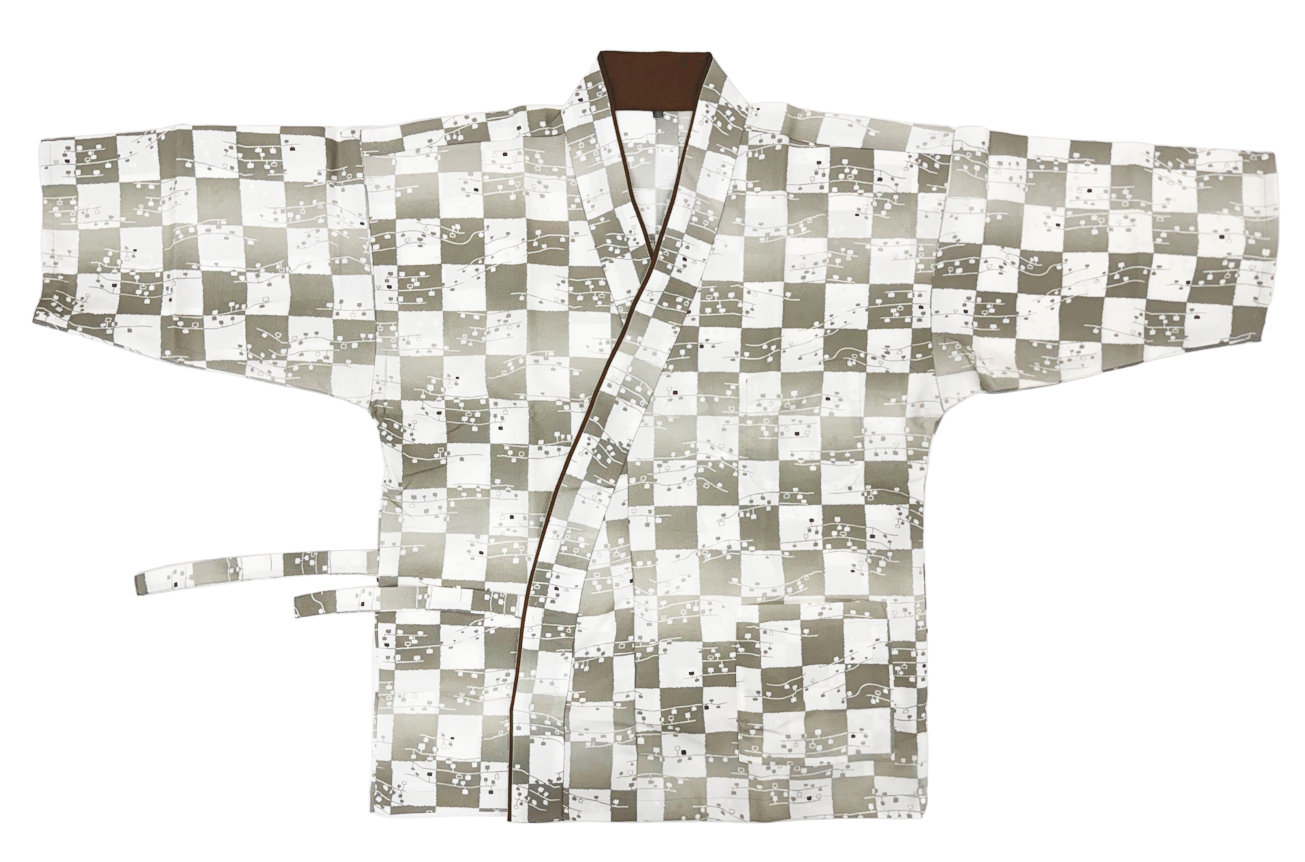 作務衣・上着【市松和モダン・茶】M・L・LL・3L寸 [fk-sj4055]