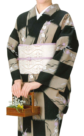 【女単衣仕立】着物 市松桜・黒【受注生産品】