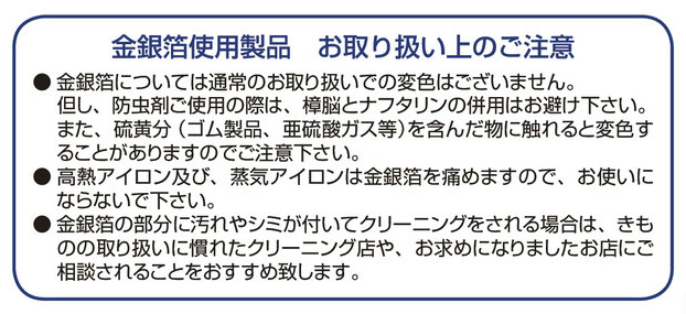 ※「金銀箔使用製品 お取り扱い上のご注意」を、二枚目の画像に載せております※