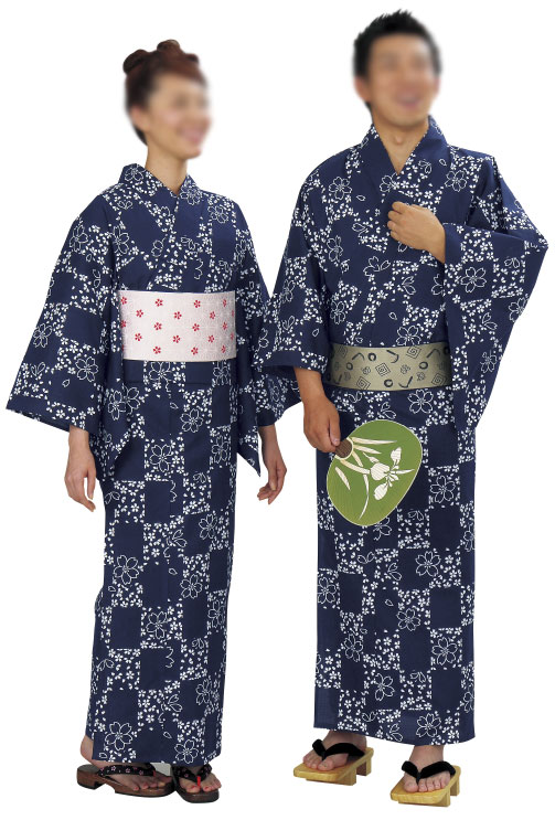 【男女同柄】仕立て上がり お揃い浴衣 男仕立M寸・男仕立L寸・男仕立LL寸・女仕立【市松桜】 [u3370-s]