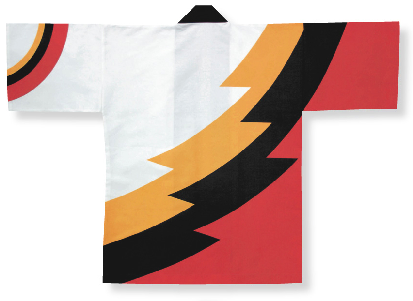法被:【斬新な稲妻】オレンジ (赤系)和太鼓にも人気のデザインです。 [nm6484]