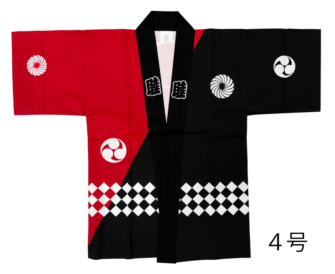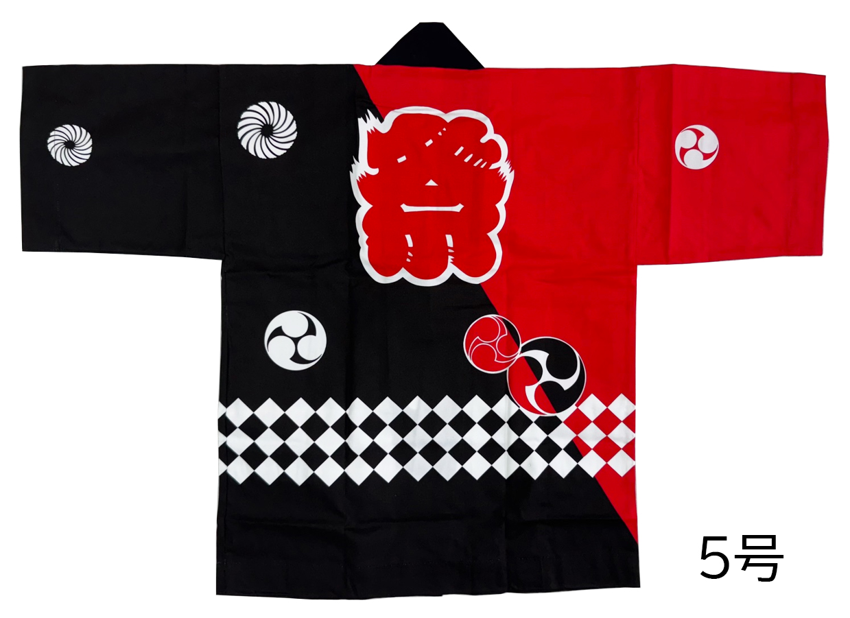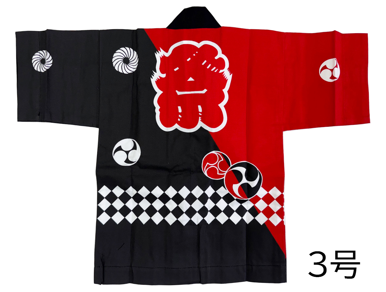 子ども用お祭り法被 【ななめ市松・獅子毛・巴に祭】黒・赤 [s9626]