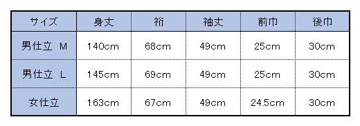 お仕立て上がり 男仕立(M/Lサイズ)・女仕立(1サイズのみ)は共にミシン仕立となっております。