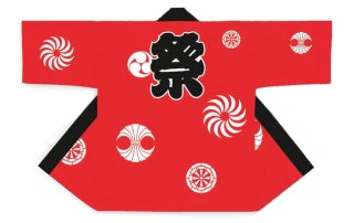 お祭り法被:半纏帯別売【祭・獅子毛・熨斗・源氏車・三つ巴】赤 [ty60354]